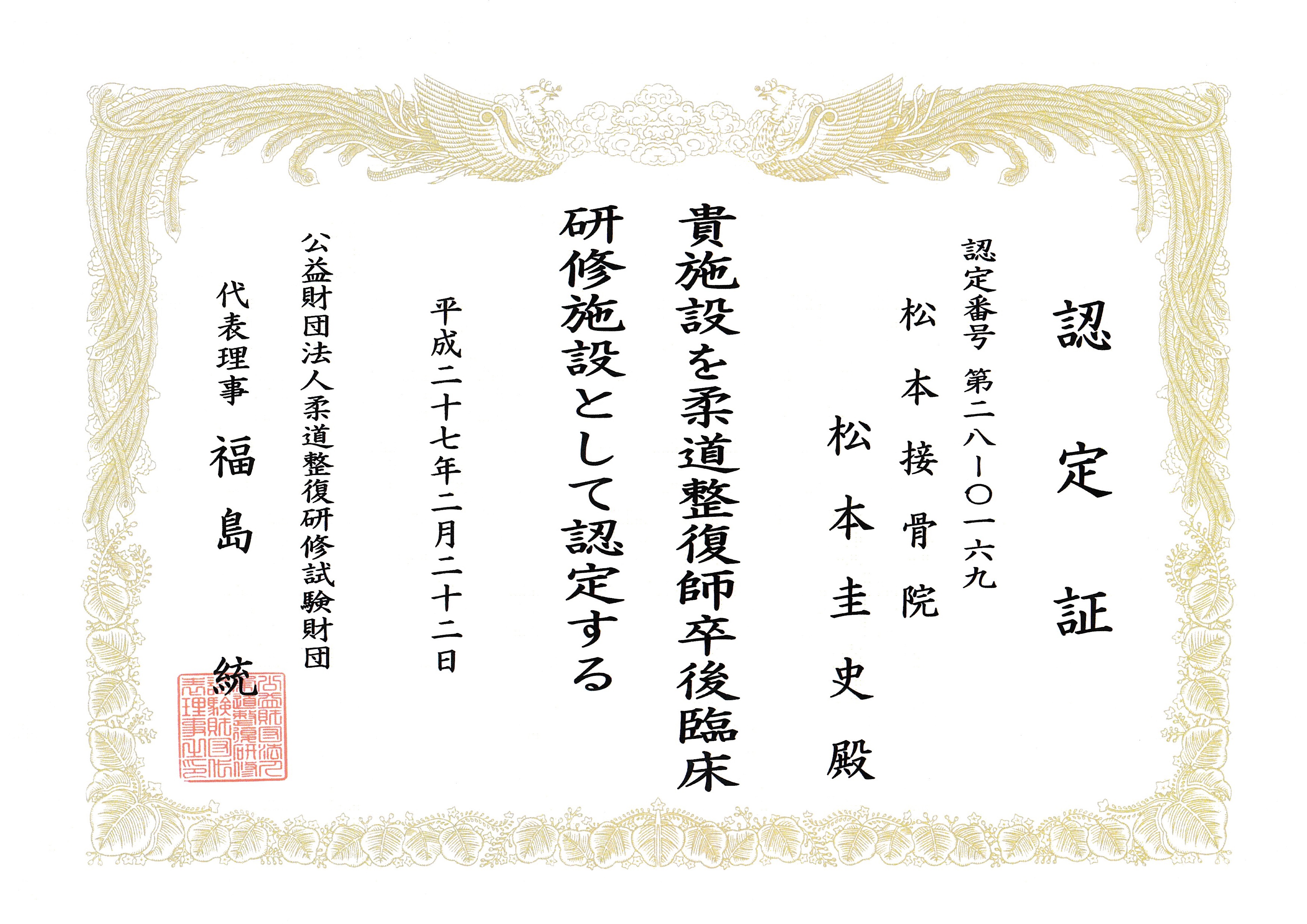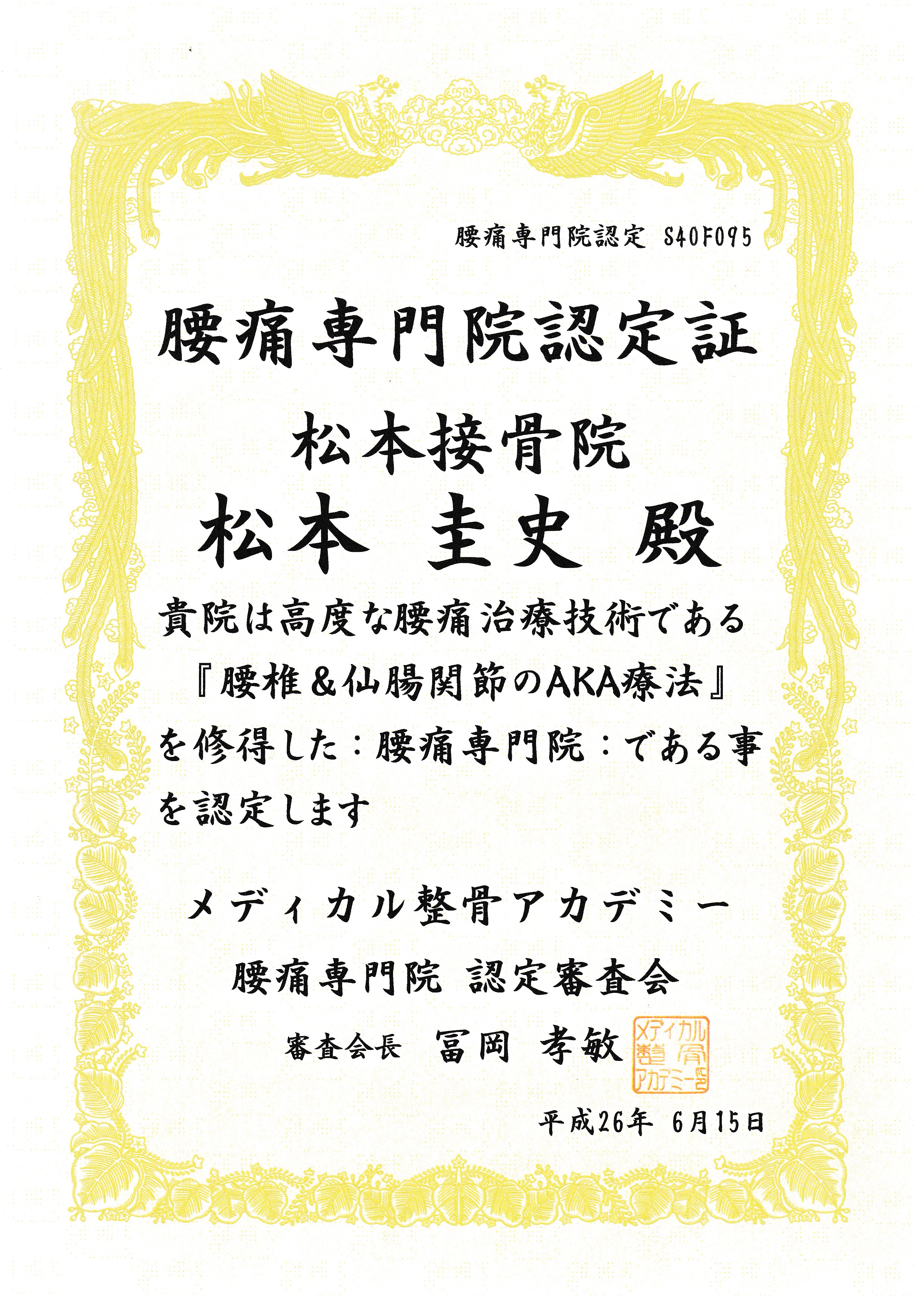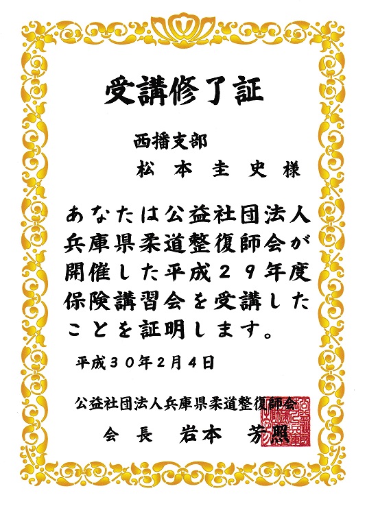 ニチバン・テーピングセミナー 腰痛専門院認定証