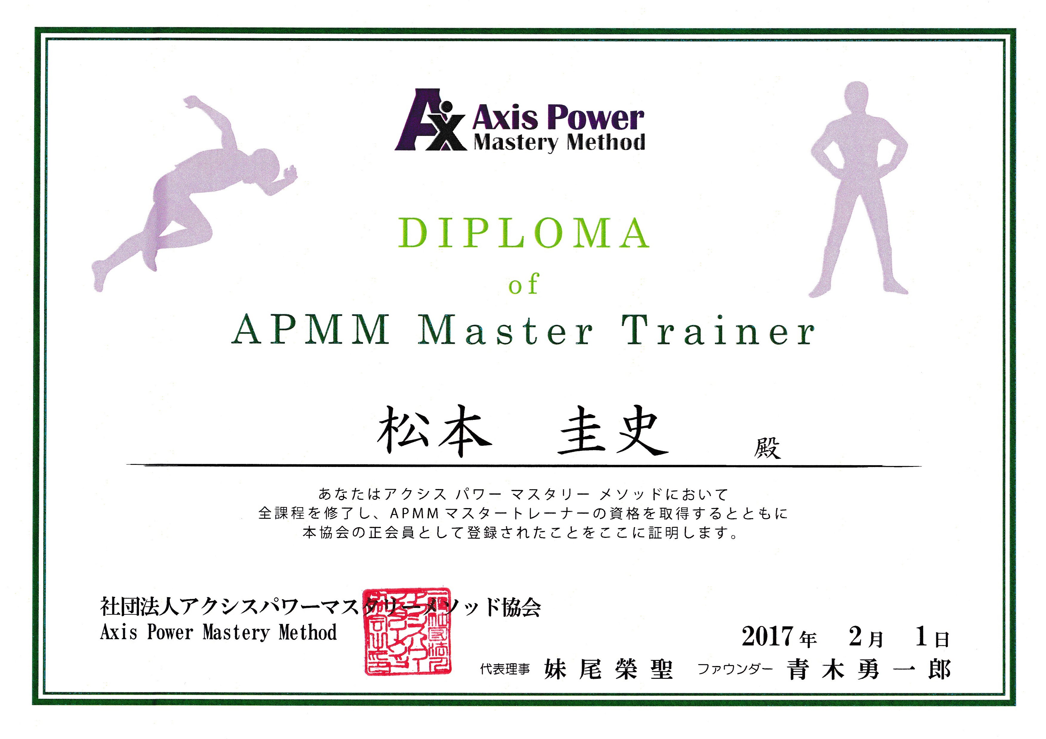 柔道整復師免許証(国家資格) アクシスメソッド・マスタートレーナー認定証